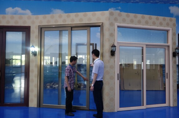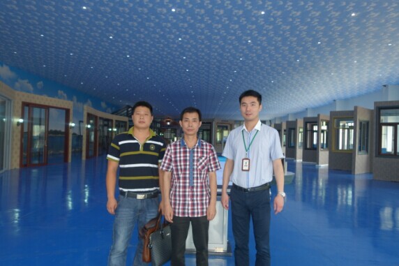 (貴賓與營銷總監(jiān)在全國最大的門窗體驗中心合影)