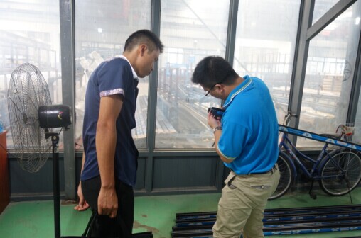 (曾副總在向貴賓介紹我司注膠隔熱斷橋生產(chǎn)工藝)