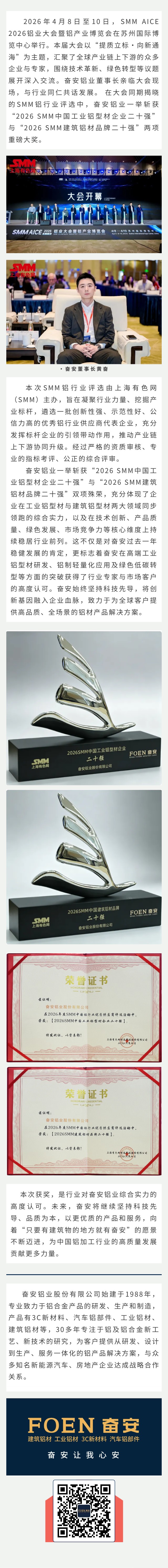 奮安鋁業榮膺2026 SMM中國工業鋁型材企業二十強、建筑鋁材品牌二十強