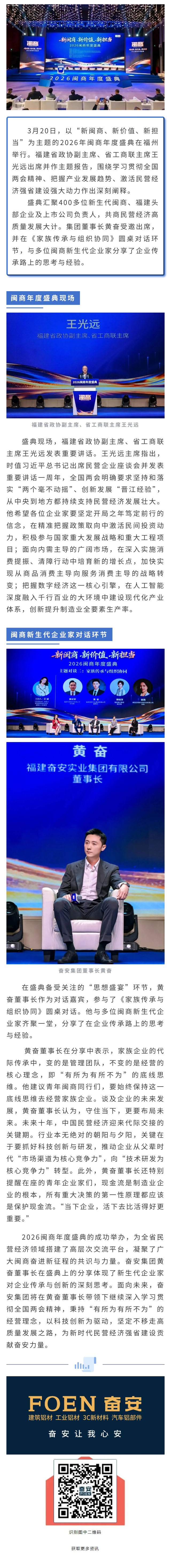 思想引領 | 黃奮董事長出席2026閩商年度盛典,共話新生代傳承與創新