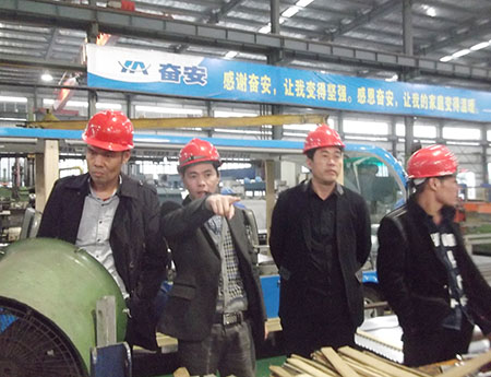 在梁總的引領下,貴賓依次參觀我司型材生產的各道工序。我司型材生產全部采用優質原材料,從而保證了成品鋁材的卓越品質。目前我司擁有多條高品質、高效能的立式噴涂線和立式木紋噴涂線、立式氧化線電泳線、自動包裝線、自動輸送線等先進的生產設備,全程采用電腦自動化控制。設備先進,品質卓越。