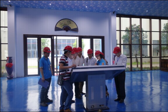 各位教授、老師仔細考察奮安型材生產的每道工序。目前我司擁有數十臺先進的擠壓設備,同時擁有多條高效能、高品質的立式噴涂線和立式木紋噴涂線、立式氧化電泳線、自動包裝線、自動輸送線等先進的生產設備;此外,還擁有全亞洲第一條月產量5000T全自動立式氧化電泳線,設備先進、品質卓越。