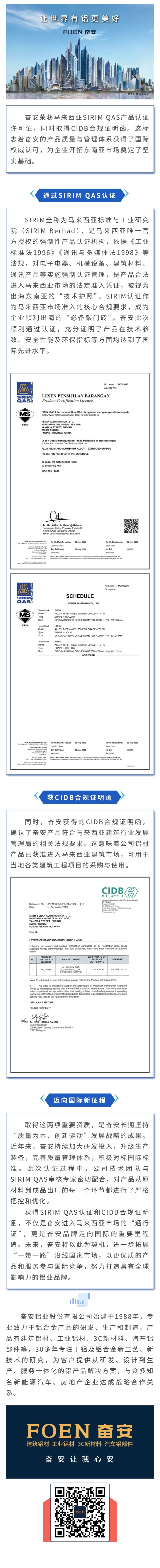 重磅 | 奮安成功取得馬來西亞SIRIM QAS產品認證許可證與CIDB合規證明函