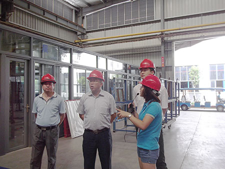 陳副總詳細地向各位領導做一一介紹:我司型材生產全部采用優質原材料并嚴格把控各道工藝,保證了成品鋁型材的卓越質量;目前,我司擁有多條立式噴涂線、立式氧化線、自動輸送線、自動包裝線等等先進的設備和奮安出庫時嚴格采用三道驗磅工序,深入貫徹“零磅差”的經營理念,做到誠信經營;并且與多家物流公司合作,擁有多種物流配送方式來滿足客戶的需求;此外,我司還提供從型材到玻璃膠、鎖、輪子等配套優質配件的一條龍服務,解決了客戶一站式購買的難題,并提供良好的售后服務。